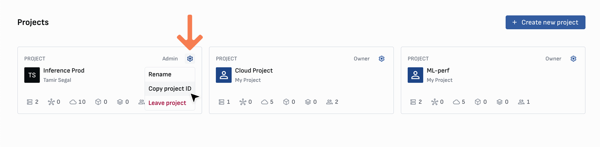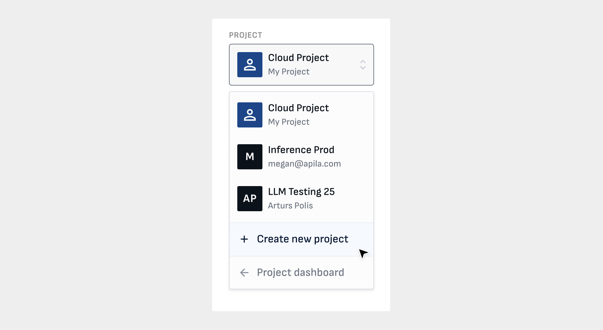 There are two different ways to create a new cloud project: via the Project dashboard or the Project menu.
