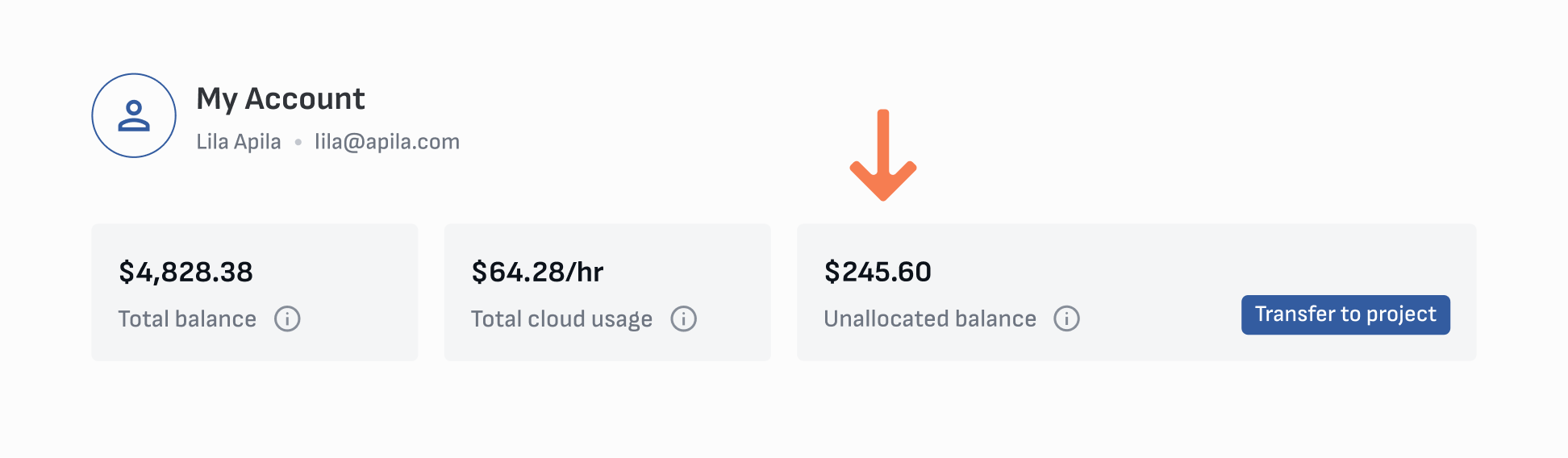 From the Unallocated balance, funds can be transferred to any other project you own.