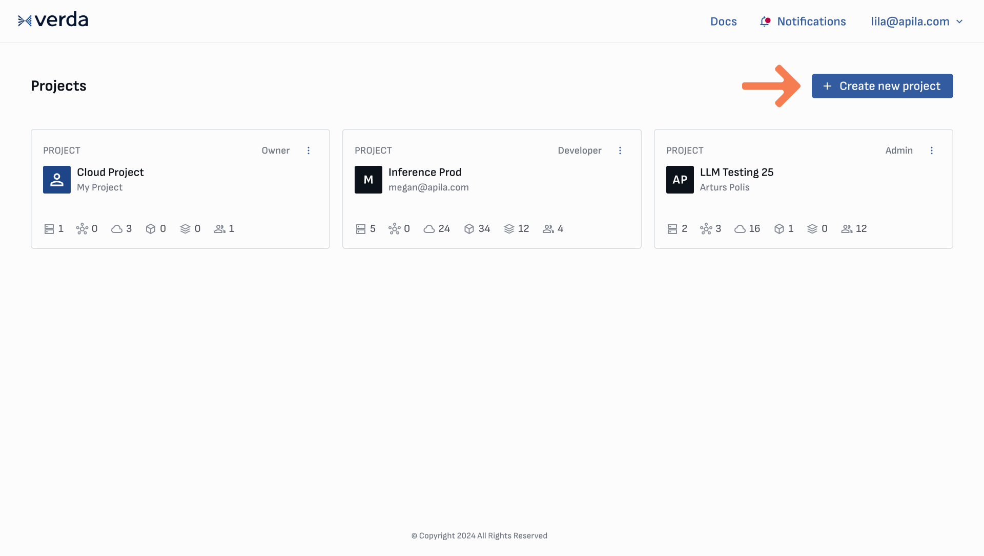 Create a new project from the **Project dashboard** by clicking the **Create new project** button on the top right corner of the screen.